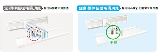 低頻擺蕩抑制 對高撓性機(jī)臺,有效抑制機(jī)構(gòu)振蕩,提升運(yùn)轉(zhuǎn)效能 主動式演算抑制法則,可避免末端機(jī)臺抖動,增快運(yùn)轉(zhuǎn)速度