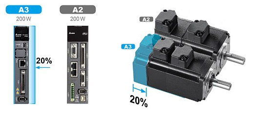 驅(qū)動器面寬與馬達(dá)長度縮小約 20% (與 A2 相比)