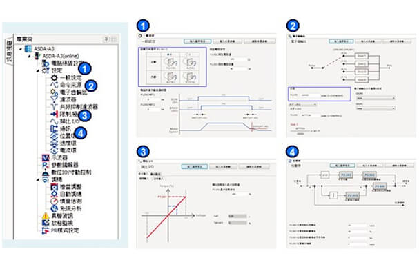 引導(dǎo)式與對話式的自動調(diào)機(jī)功能,只要循序簡單設(shè)定即完成伺服增益調(diào)整