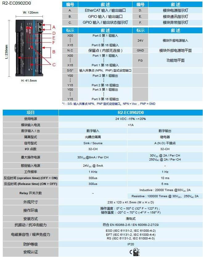 32 通道數(shù)字輸入 / 32 通道數(shù)字輸出遠(yuǎn)程模塊 – R2-EC0902D0