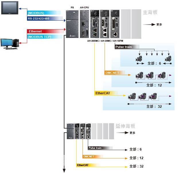 提供 EtherCAT、DMCNET 與 Pulse-train 等運(yùn)動(dòng)控制接口